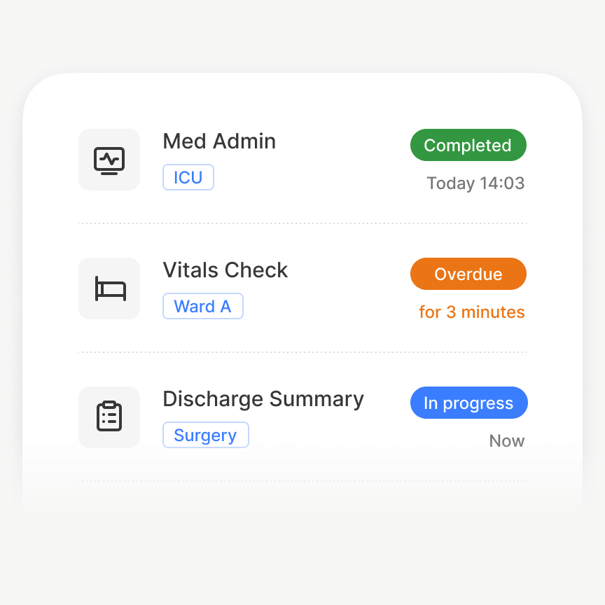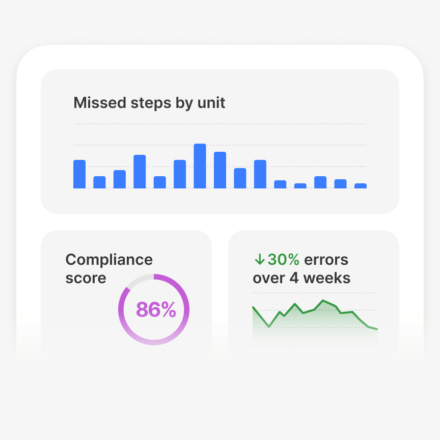 Automatically flags missed steps and deviations, giving you live visibility into nursing compliance.
